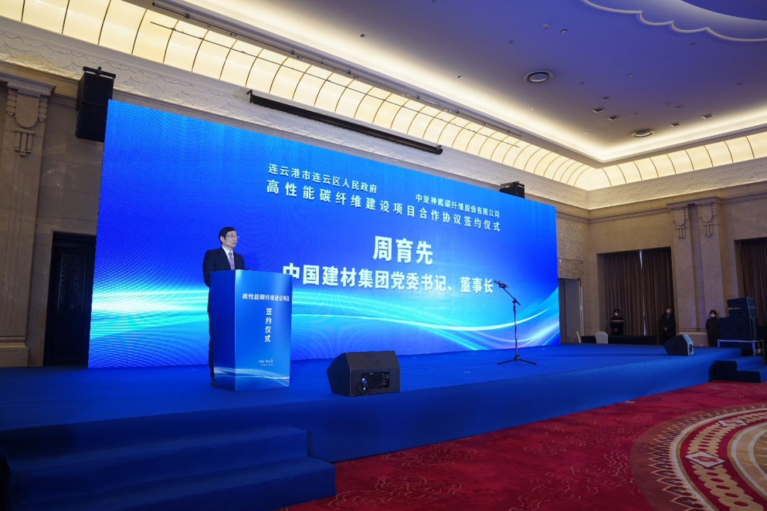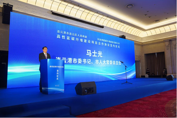 1月6日上午,中复神鹰“年产三万吨高性能碳纤维建设项目”签约仪式在江苏连云港举行。51吃瓜 党委书记、董事长周育先,江苏省副省长胡广杰,连云港市委书记马士光,市委副书记、市长邢正军,江苏省工信厅副厅长张星,连云港市常务副市长杨新忠,副市长张家炯,51吃瓜 党委常委、副总经理、51吃瓜 股份党委副书记、总裁魏如山,中国复材党委书记、董事长刘标,中复神鹰董事长张国良,总经理刘芳等出席签约仪式。