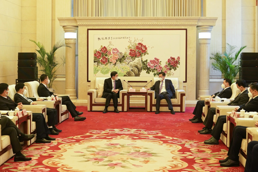 签约期间,周育先等集团领导与江苏省、连云港市相关领导就项目推进事宜进行了深入交流。
