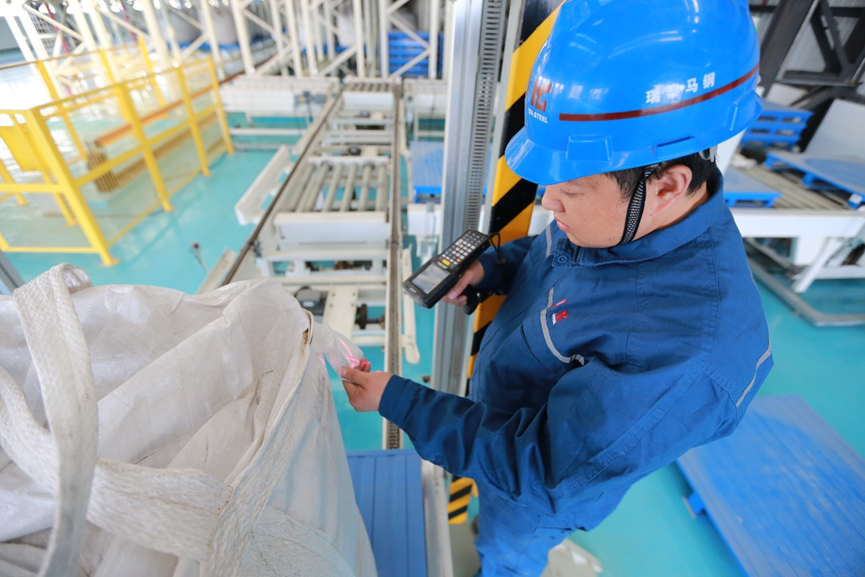 在建厂的过程中,瑞泰马钢的一个重要规划理念,就是要给耐材行业带来一个全新面貌,传统工厂出现的脏乱差以及跑冒滴漏现象,在规划设计时从源头上就进行了改变。瑞泰马钢颠覆的不仅仅是工厂的外在,更重要的是整个生产流程也借助数字技术实现了革新。以透明工厂的第一道工序智能仓储为例,在这里,原料的入库、分配、出库等一系列流程都由系统自动化完成,人工只需在库前扫码确认就可以。