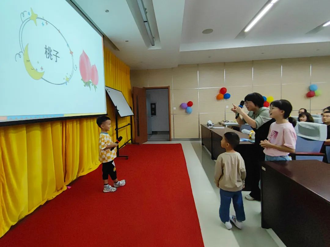 现场参观结束后,进行了亲子互动游戏:快乐寻宝和你比划我猜,在轻松愉悦的氛围下,孩子们大方上台表演。