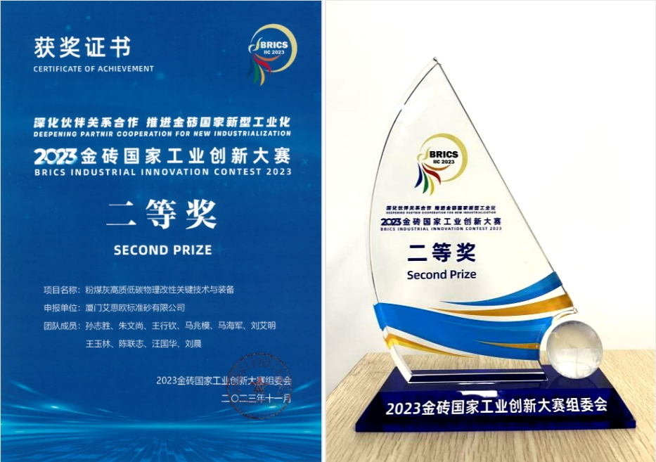 近日,厦门标准砂申报的“粉煤灰高质低碳物理改性关键技术与装备”项目进入“2023金砖国家工业创新大赛决赛”,该项目围绕大宗工业固废高效利用,助力金砖国家绿色低碳发展,在“绿色循环”赛道的30个决赛项目中脱颖而出,最终荣获二等奖。