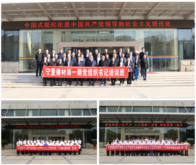 2023年,宁夏建材在中共宁夏区委党校(宁夏行政学院)组织开展宁夏建材党组织书记培训班、党的二十大精神专题培训班(共两期),培训班涉及党的二十大精神专题学习、不断做强做优做大我国数字经济等课程,课程主题鲜明,深入浅出,对学习领会党的二十大精神,指引推动各项工作起到了重要的指导作用。在所属企业创新开展宁夏建材第二届党建工作观摩交流会议,通过专题培训和现场观摩交流的形式,打造一支“专心、专业、专注”的高素质专业化党务工作者队伍,推动基层党建工作提质增效。