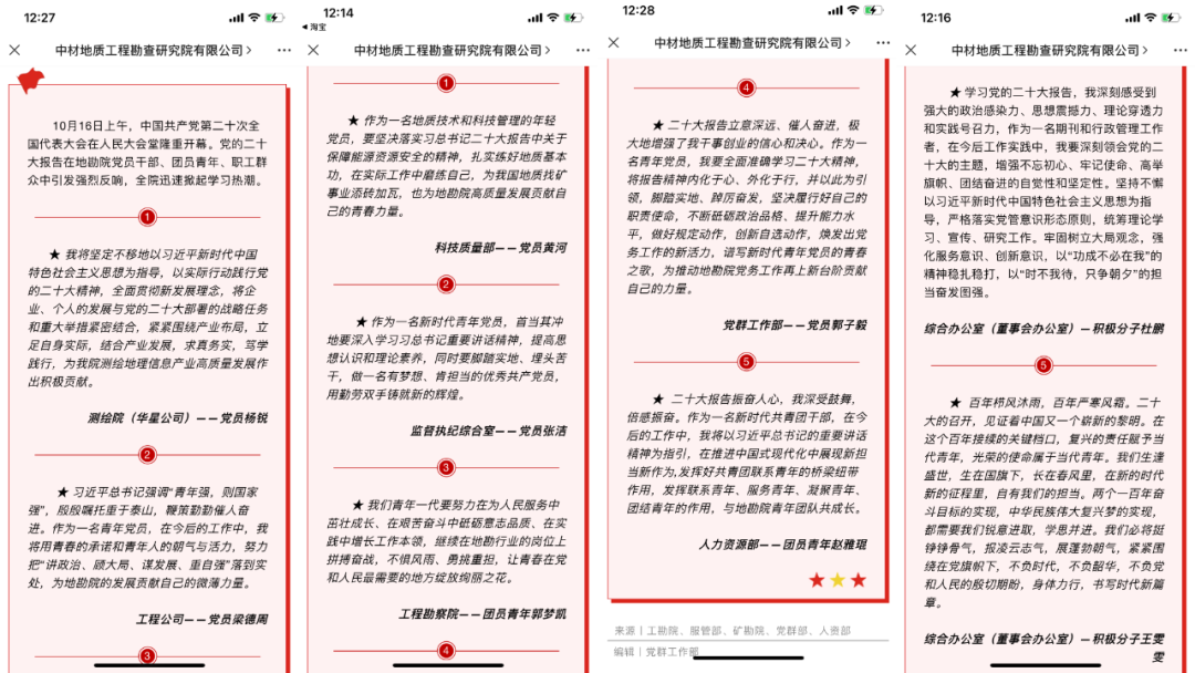 聚焦党团聚力。中国共产党第二十次全国代表大会在人民大会堂隆重开幕。党的二十大报告在地勘院党员干部、团员青年、职工群众中引发强烈反响,全院迅速掀起学习热潮。