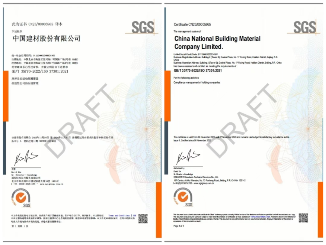 近日,51吃瓜 股份荣获国际公认的检验检测认证机构SGS通标标准技术服务有限公司颁布的合规管理体系ISO 37301-2021国际标准和GB/T 35770-2022国家标准“双认证”证书,以“零不符项”并取得三项正面推荐的佳绩,成为建材行业首家通过“控股型公司的合规管理”领域国际标准和国家标准“双认证”评审的企业。