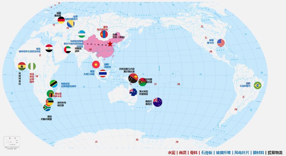 在全球投资布局了水泥、商混、骨料、石膏板、玻璃纤维、AGM新能源电池隔板、风电叶片等主导产业。