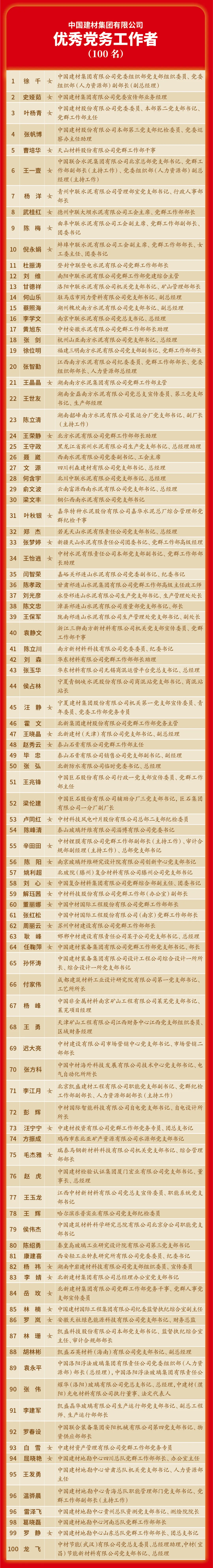 集团党委号召,各级党组织和广大共产党员要以他们为榜样,学习他们旗帜鲜明讲政治,坚持不懈用习近平新时代中国特色社会主义思想凝心铸魂;学习他们拼搏奋斗干事业,心怀“国之大者”,打造“国之大材”,扎根生产经营科研最基层最前沿,以实干实绩展现建材央企的责任担当;学习他们严谨务实强作风,持之以恒抓党建强党建,持续增强基层党组织政治功能和组织功能,以高质量党建引领保障企业高质量发展。