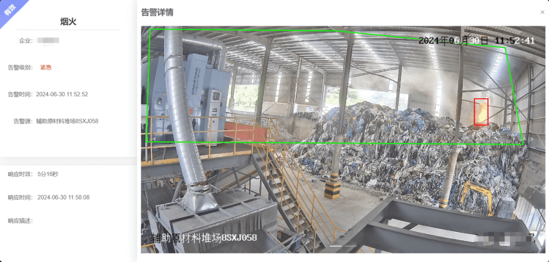 此次火灾险情迅速得到控制,不仅彰显了企业完备的应急预案和高效的组织执行能力,还得益于系统强大的AI算法能力,其背后是60亿+工业领域样本库的积累与支撑,可以辨识人眼无法看清的目标,能够在0.5秒内快速识别异常情况,及时发出告警提醒,有效将事后追溯转变为事前预防,为企业赢得了宝贵的救援时间。