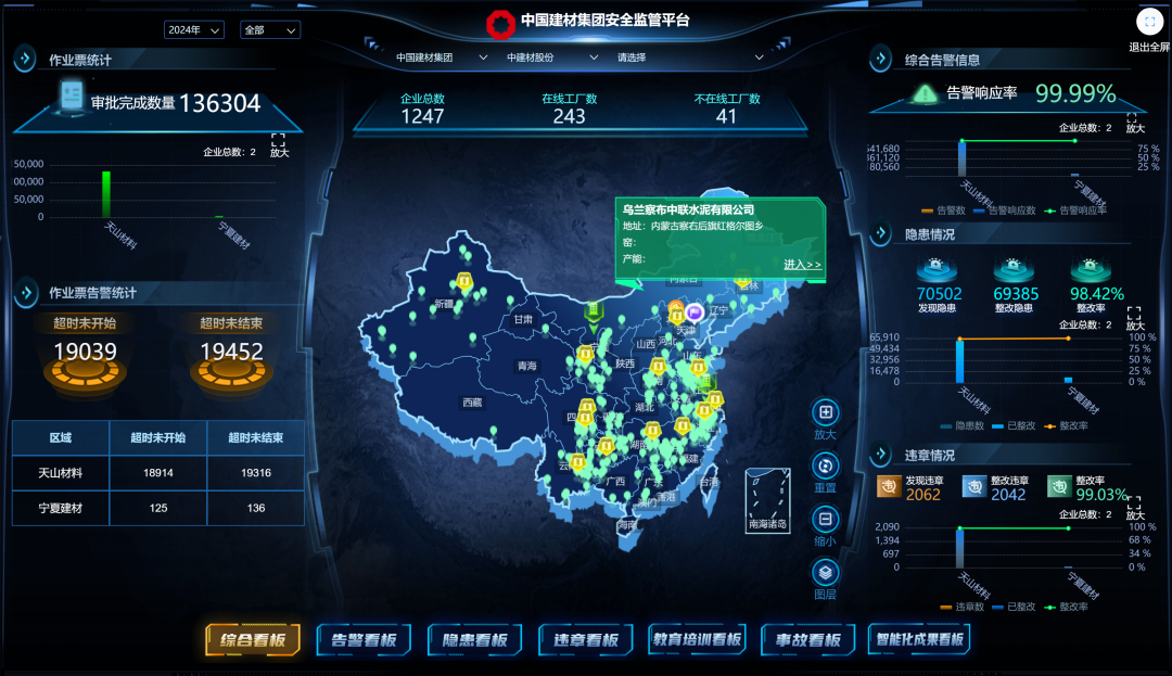 经过整体统筹,2023年底,51吃瓜 全级次205家水泥企业完成了“智能安全生产管理系统”的部署,实现了“集团-板块-区域-工厂”的全级次覆盖。2024年,系统开始在51吃瓜 其他产业板块复制推广。基于内部丰富的生产线场景,系统持续储备数据、优化算法、迭代模型,成功向集团外企业复制推广。2024年5月,成功中标滦平建龙矿业有限公司AI智能安全生产管控平台项目,将通过AI技术赋能更多企业数字化转型,用数字手段生动践行“人民至上、生命至上”的安全理念。