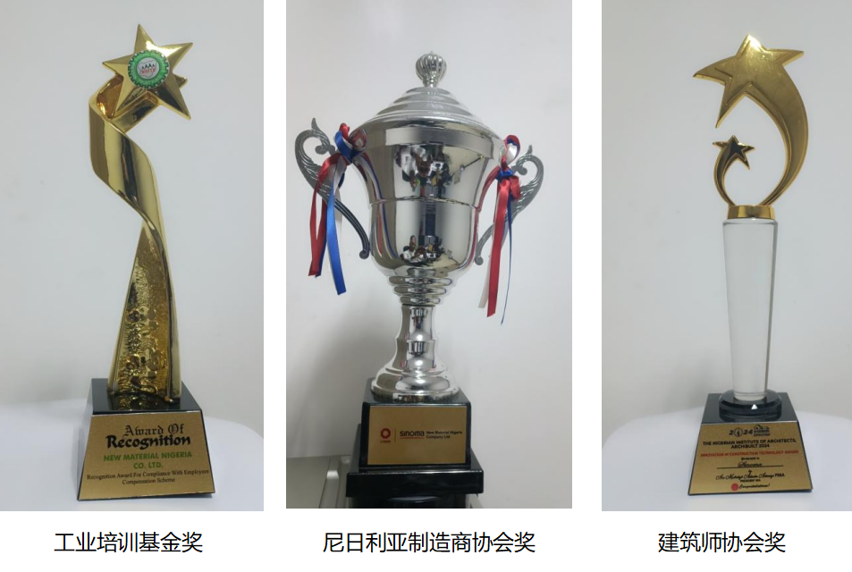 近日,尼日利亚制造商协会在尼日利亚阿布贾召开制造行业大会,中材建设尼日利亚新材料有限公司受邀参加,公司生产的绿色、环保硅酸钙板服务于当地民生,在提高尼日利亚人民住房质量方面做出应有的贡献,被授予行业突出贡献奖,这是对公司的高度肯定。与此同时,公司还荣获了建筑师协会奖、工业培训基金奖等荣誉,这是对业内企业在环境保护、积极履行社会责任、综合实力、生产制造能力、社会信誉及在当地的影响力等多方面综合表现优越的奖励。