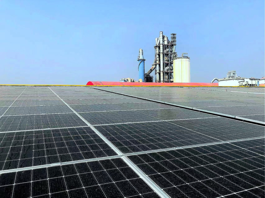 利用熟料烧成系统的窑头、窑尾废气进行发电,年发电量约5300万千瓦时;利用厂区厂房屋顶和原材料堆棚顶部资源进行光伏板布置,建成一期2.03MW容量的分布式光伏发电项目,二期1.74MW容量的分布式光伏发电项目正在建设中,在大幅降低电网购电使用成本的同时,丰富了企业用能结构,促进了清洁、低碳生产。