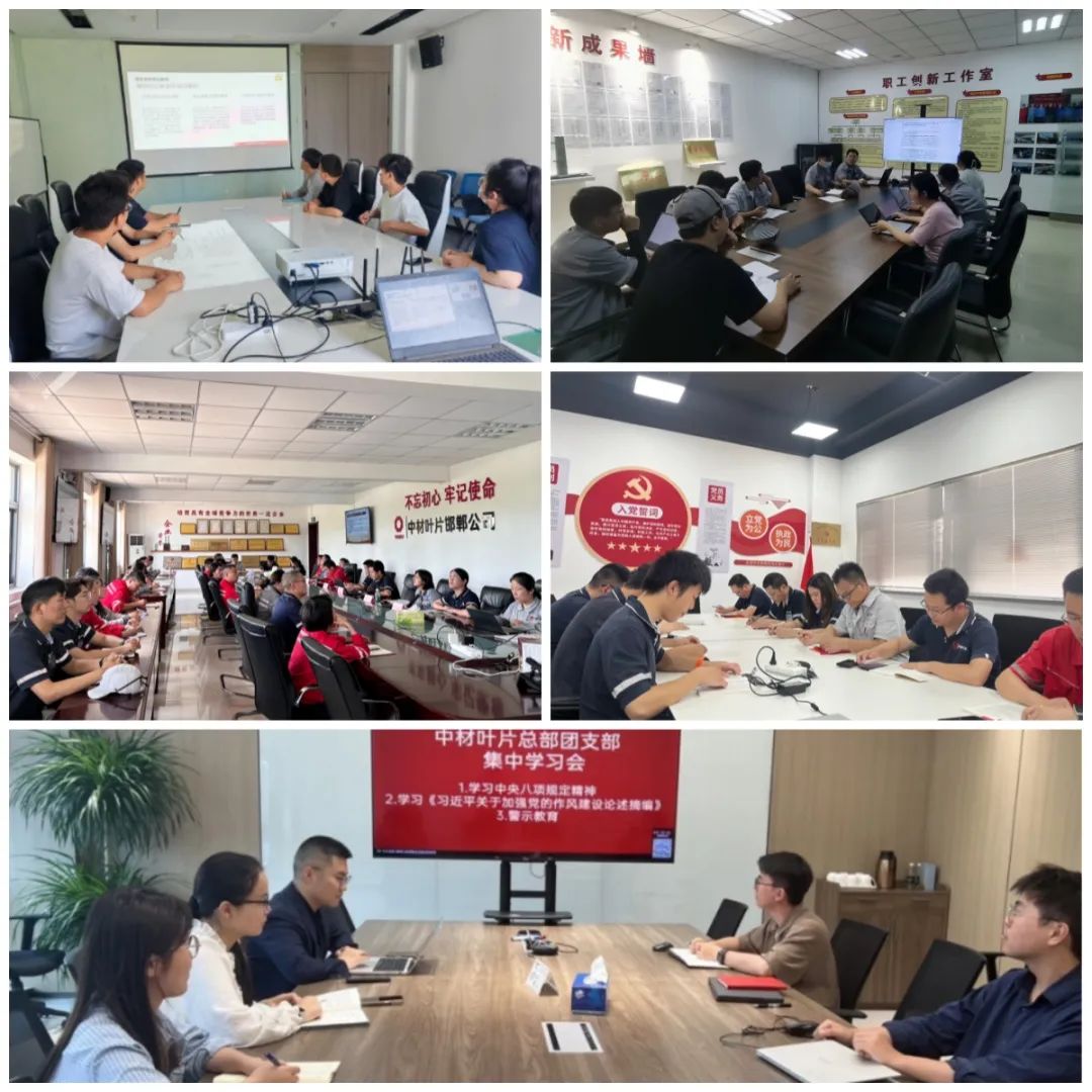 中材叶片各子公司团组织将中央八项规定精神及《习近平关于加强党的作风建设论述摘编》作为首要学习内容,精心组织专题集中学习会。