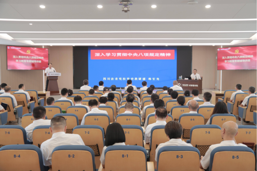 成都建材院团委组织全体团员青年参加深入贯彻中央八项规定精神学习教育专题辅导讲座,深入学习党的作风建设发展历程及主要理论成果,学习中央八项规定精神,进一步强化廉洁从业意识。