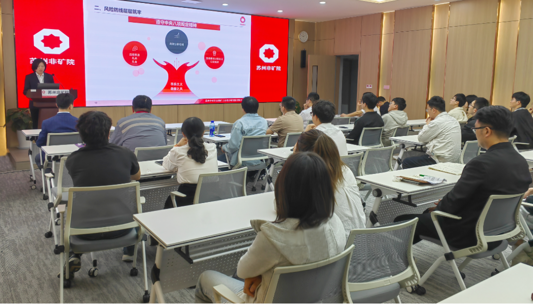苏非有限监督执纪综合室胡润华以《青年·清廉说》为题,围绕 “清廉基因代代传承、风险防线层层筑牢” 等内容,讲授了一堂生动的廉政教育课,重点解读了中央八项规定精神的核心要义,剖析形式主义、官僚主义等“四风”问题的顽固性和危害性,结合近年来其他单位查处的违规收送礼品礼金、酒驾醉驾、网贷赌博等典型案例,警示团员青年要时刻保持清醒,严防“由风及腐”的风险演变。