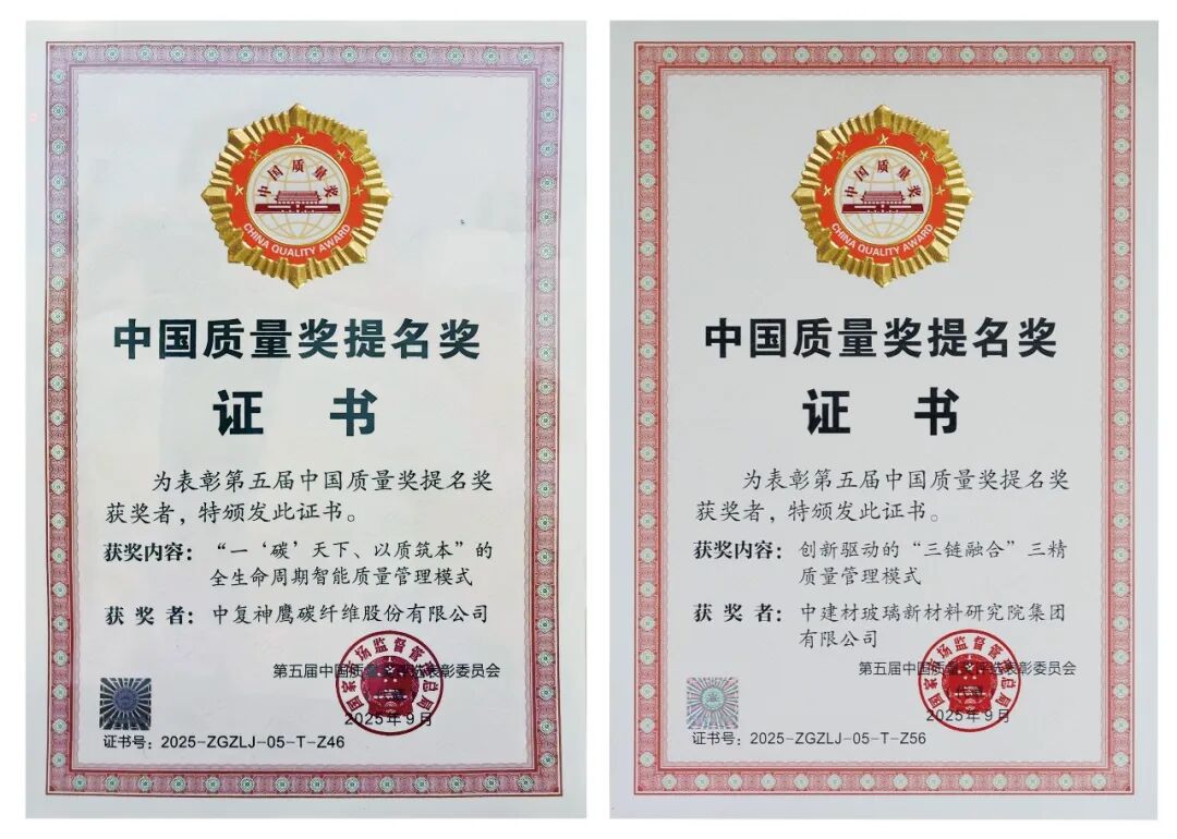 作为国内碳纤维行业的领军企业,中复神鹰深入贯彻习近平总书记关于质量工作重要论述和重要指示批示精神,落实质量强国建设要求,秉持“质量第一、持续改进”的理念,将技术创新与精细管理深度融合。通过构建独具特色的“一‘碳’天下、以质筑本”的全生命周期智能质量管理模式,公司实现了高性能碳纤维的稳定化和规模化生产,成功打破国外长期技术垄断,为我国航空航天、新能源、轨道交通等战略领域提供了关键材料支撑。此次获奖是对中复神鹰长期以来坚持质量优先战略、不断推进技术和管理创新的高度认可,更是对中复神鹰发挥行业引领作用的充分肯定。