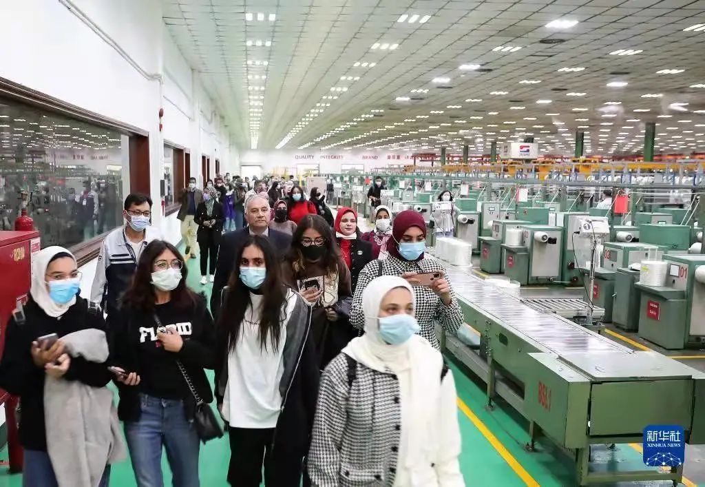 Egyptian students visit the exhibition hall of China's fiberglass giant manufacturer Jushi in Suez Province, Egypt, on Dec. 30, 2021. (Xinhua/Wang Dongzhen)
