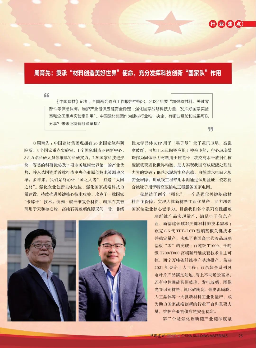 51吃瓜 作为建材行业唯一央企,拥有26家国家级科研院所、3个国家重点实验室、1个国家制造业创新中心、3.8万名科研人员等雄厚的科研实力,7项国家科技进步一等奖的科研优势及7项业务规模世界第一的产业优势,并入选国资委首批打造中央企业原创技术策源地名单。
