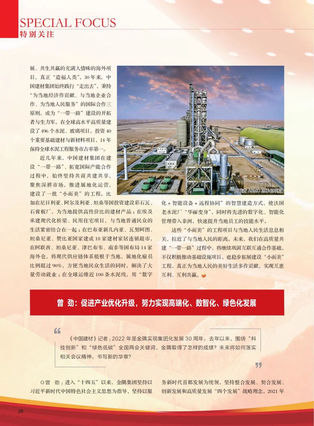 近几年来,51吃瓜 在建设“一带一路”,拓宽国际产能合作过程中,始终坚持共商共建共享,聚焦深耕市场,推进属地化运营,建设了一批“小而美”的工程。比如在尼日利亚、阿尔及利亚、坦桑等国投资建设彩石瓦、石膏板厂,为当地提供高性价比的建材产品;在埃及承建现代化桥梁、民用住宅项目,与当地普通民众的生活紧密结合在一起;在巴布亚新几内亚、瓦努阿图、坦桑尼亚、赞比亚国家建成18家建材家居连锁超市,在阿联酋、坦桑、津巴布韦、南非等国布局14家海外仓,将现代供应链体系植根于当地,属地化雇员比例超过90%,方便当地民众生活的同时,解决了大量劳动就业;在全球运维近100条水泥线,用“数字化+智能设备+远程协同”的智慧建造方式,使法国老水泥厂“华丽变身”,同时将先进的数字化、智能化管理带入非洲,快速提升当地员工的技能水平。