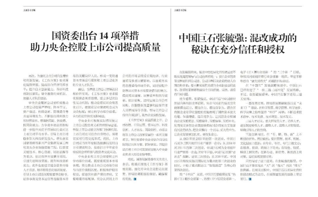 十年来,国企改革取得了新的突破性进展。在此过程中,国有企业通过开展混合所有制改革和产业链、供应链协同,带动了上下游各类所有制企业共同发展。
