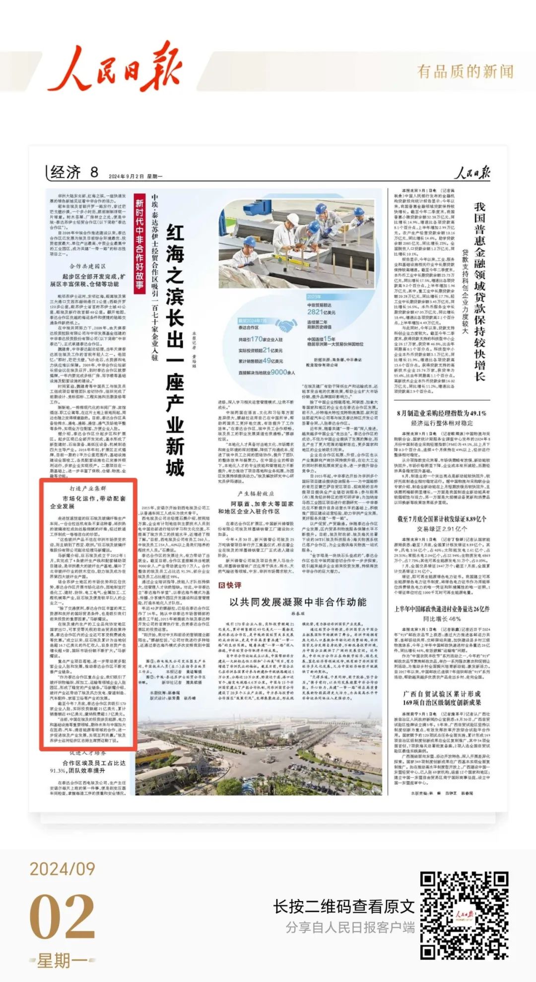 重点产业项目落地,进一步带动更多配套企业入驻和发展,推动泰达合作区不断完善产业链条。