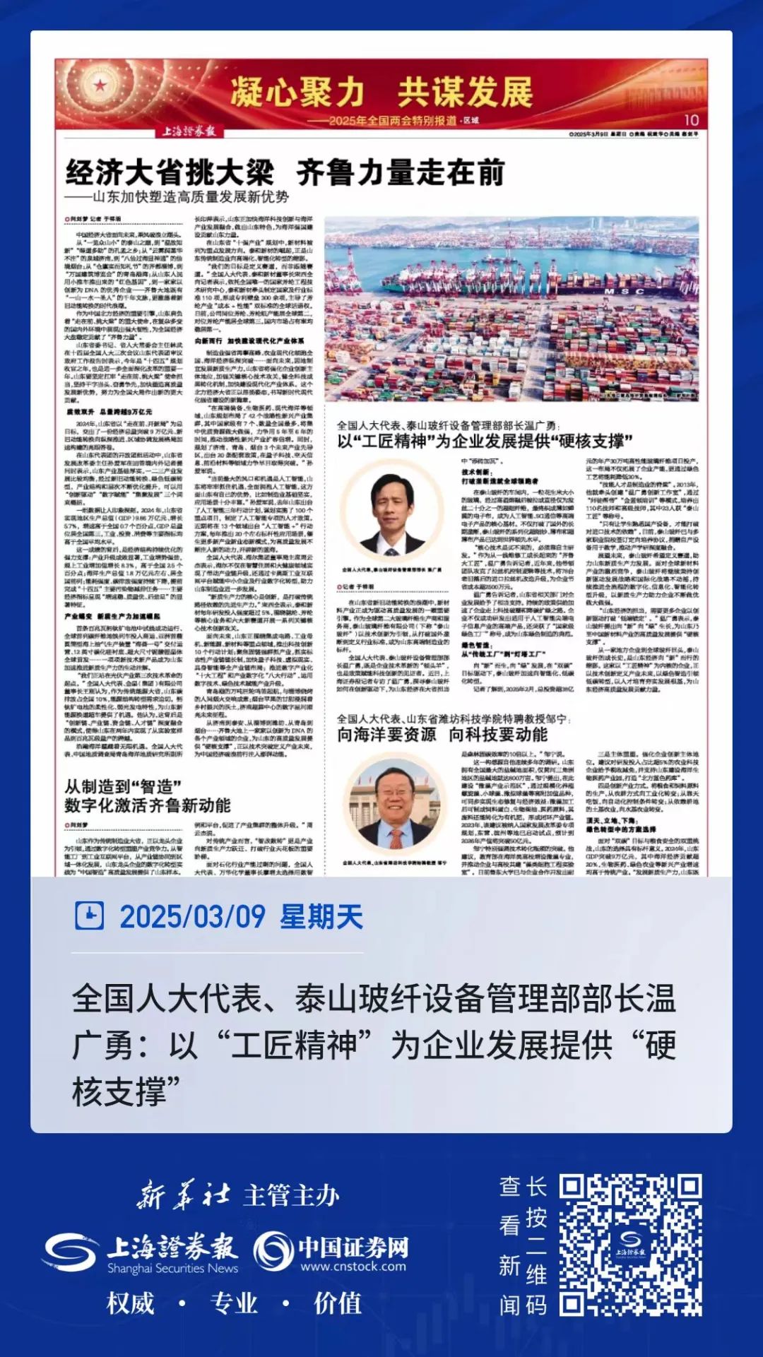 从一家地方企业到全球玻纤巨头,泰山玻纤的成长史,是山东经济向“新”而行的缩影。这家以“工匠精神”为内核的企业,正以技术创新定义产业未来,以绿色智造引领低碳转型,以人才培育夯实发展根基,为山东经济高质量发展贡献力量。