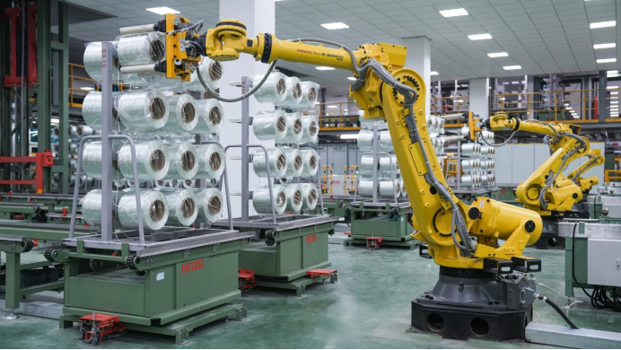他告诉记者,该基地升级生产工艺,依托国家级科研平台,瞄准行业技术前沿,集成应用高性能玻璃配方、超大型池窑、关键原材料研发自制、智能智慧制造等一系列先进玻纤生产工艺和技术,拥有100%自主知识产权。同时,基地引入数智制造系统,实现了生产计划、供应链、设备运维的全流程透明化管理,并为每吨玻纤生成唯一“碳中和身份证”。