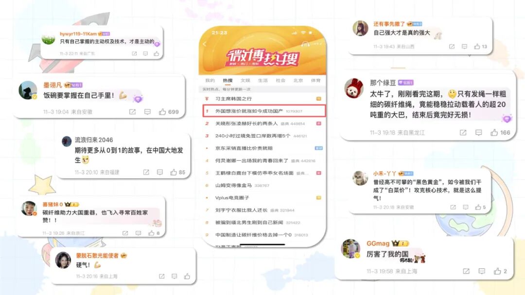 11月3日,#外国想涨价就涨如今成功国产# 词条冲上微博热搜榜第一,引发全网关注。这一切,都指向一种看似轻微却是国之重器的材料——碳纤维。