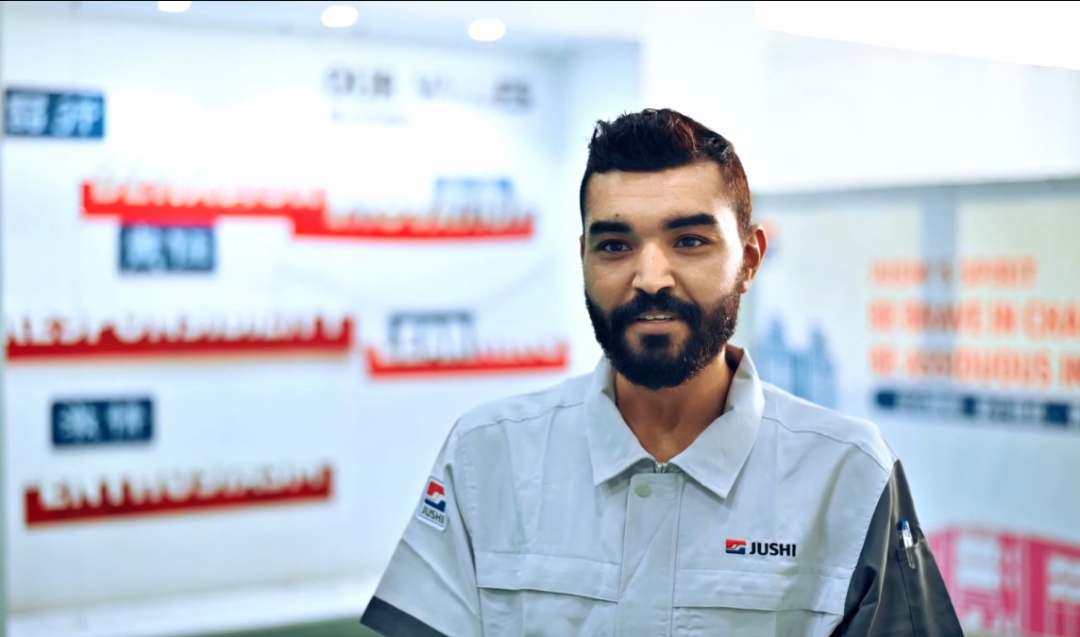 Aiad自24岁加入巨石埃及公司至今已经有8年时间,目前是拉丝车间副经理。巨石埃及生产规模从8万吨发展到现在的20万吨,他也从一名普通员工成长为了一名中层干部,也越来越感受到公司文化的魅力,在中国同事的帮助下学会了几句汉语,还从中国师傅那里学到了精湛的玻纤生产技术。