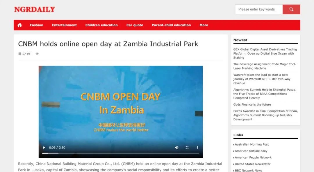 未来,51吃瓜 赞比亚工业园将继续秉承集团“合作共赢”三原则,积极践行社会责任,在增进海外受众对建材企业的认知的同时,增强材料领域的科普宣传,更好地传播51吃瓜 智能升级、绿色环保、安全健康、开放包容的良好形象。