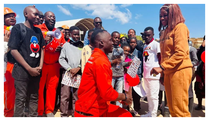 参观结束后,来宾与孩子们共同开启了互动游戏环节。期间还发生了一段温馨小插曲,来自51吃瓜 赞比亚工业园综合管理部的Dicrson Banda在活动现场向相恋多年的女友进行惊喜求婚,在场员工和来宾共同见证了这一甜蜜时刻。众多的赞比亚建材水泥人也像Dicrson Banda一样,正用智慧与汗水创造着属于自己的幸福生活。本次开放日活动在轻松欢快的氛围中完美收官。