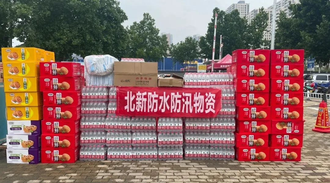 所属北新建材北方公司中原运营区组织人员向被困人员及经销商提供救急物资。