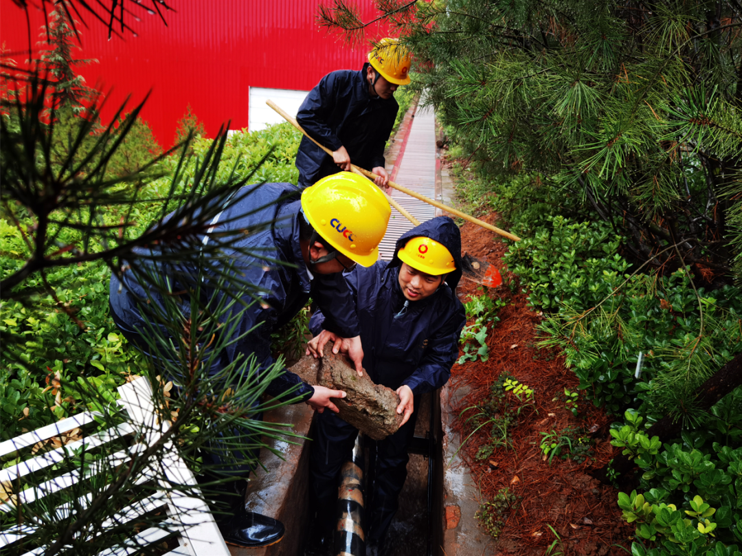 ▲所属洛阳中联组织党员突击队疏通排水沟,检查护坡,排查地坑
