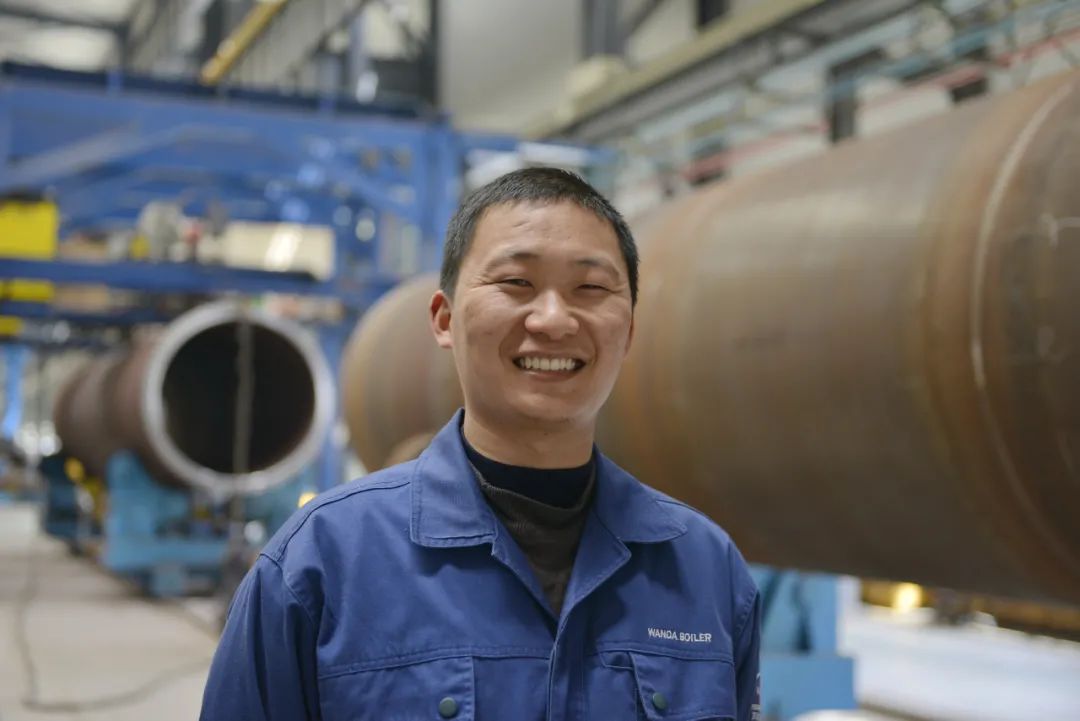 在与浙江大学联合开发的流化床生物质秸杆锅炉项目实施过程中,曾国苍再一次应对挑战——高温耐热钢P91材料的焊接。此次焊接工艺复杂、工作条件苛刻,必须将工件加热到205到300度之间才能进行焊接作业。如此高的温度人烤得都无法靠近,就别提拿焊条近距离的在上面焊接了。虽然配备的石棉手套能起到一定的隔热效果,可往往带了还没一个小时手臂上就痛痒难忍。曾国苍想了一个办法,在电焊手套里再戴一副小的棉手套,焊完两根焊条就拿风扇吹一吹降降温,就这样一遍遍重复。为了保证焊接质量,减少几个接头,他强忍高温焊完一整条焊缝才歇口气。在他的带领下,组员们全心投入工作,最终以100%合格率圆满完成了任务。