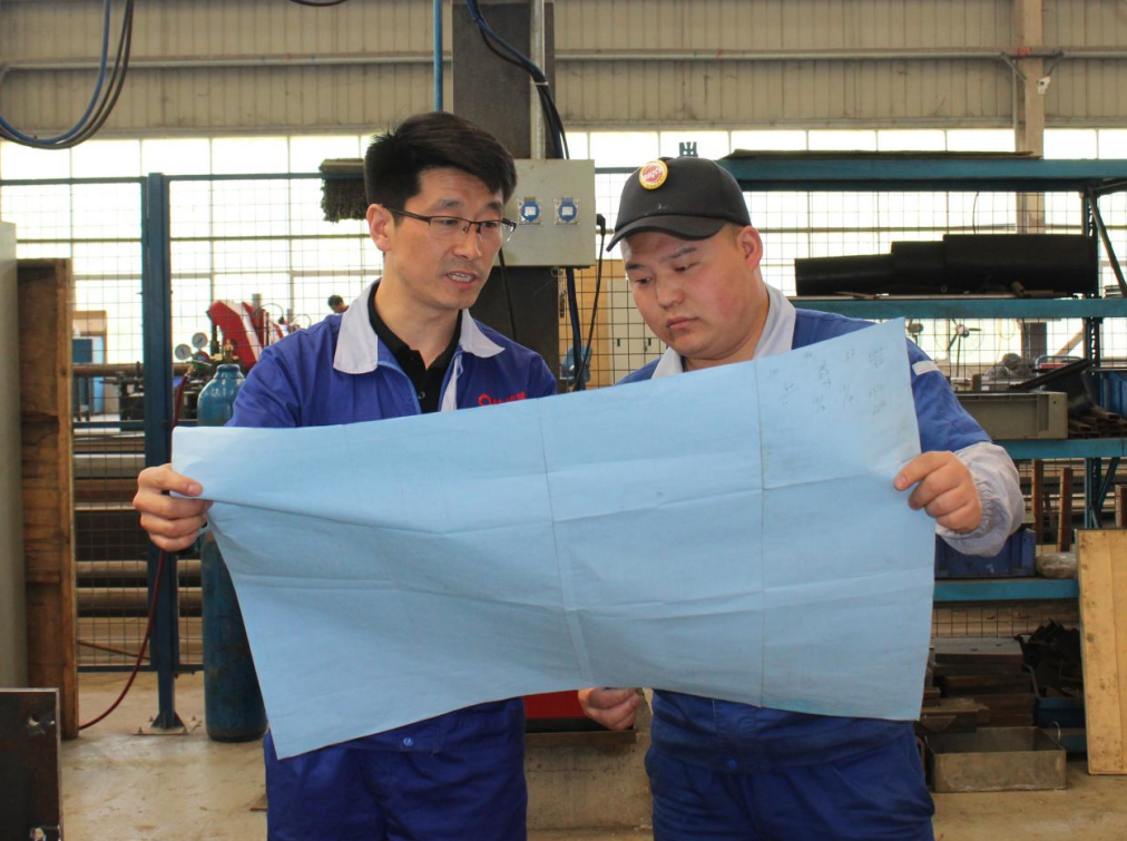 生产过程的工艺革新和节能降耗是马永飞勤常常思考的问题。在压延机退火窑壳体制作过程中有3种不同尺寸的螺纹吊杆,螺母需要旋入正常工位,现场的组焊人员在此项工步上需要投入较大的工作量,面对生产过程的技术问题,马永飞提出了一套螺杆旋入定位工装,并迅得到采纳,使得单套整体部装效率提高了40%。在节能降本方面,马永飞有许多改进工艺的建议亮点,其中拉边机横梁工艺孔原先是结构班组划线气割而成,存在着尺寸公差和修割表面变形的问题,他结合与生产焊工多年的实践经验,提出该工艺孔在等离子设备加工一次完成,经过工艺技术的实践,取得了较好的生产效益。马永飞常说“我在基层摸爬滚打多年,自己也要不断的学习总结,提出一些实质性建议,当好一名技术助手,这是我融于企业,应该做到的”。