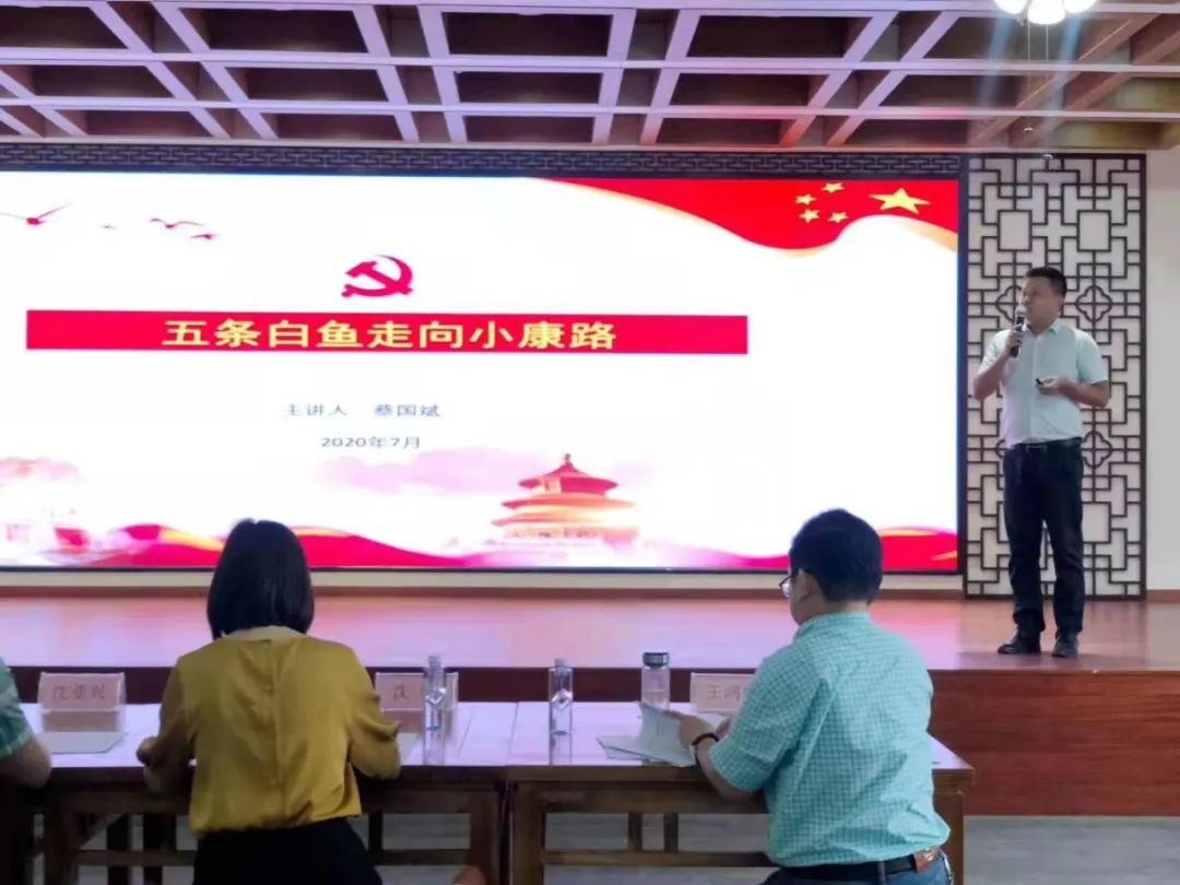 不积跬步,无以至千里。蔡国斌同志平时努力学习习近平新时代中国特色社会主义思想,把党的理论知识传递到学校、社区等基层一线。他善用诙谐幽默的宣讲方式把党的方针政策深入浅出并言简意赅地传递给广大人民群众。他的宣讲深受老百姓的喜爱,并得到政府的肯定。2019年德清县党课宣讲比赛中以“我最爱习近平总书记的一句话”获得第三名;2020年德清县老乡说小康大赛中以“五条白鱼走向小康路”荣获二等奖。乾元镇的很多学校、社区、企业都留下他的宣讲足迹。