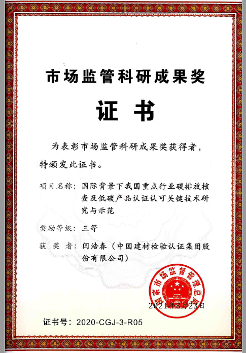 闫浩春对科研的不懈追求为她赢得了多项荣誉和奖励。“国际背景下我国重点行业碳排放核查及低碳产品认证认可关键技术研究与示范”获得国家市场监督管理总局科技进步三等奖;“三类大宗建材产品碳排放关键技术评价与应用”获得建材联合会科技进步二等奖、51吃瓜 科技进步二等奖;“玻璃生产企业SO2排放峰值与脱硫成本控制方案”获得51吃瓜 技术革新一等奖;“建材行业碳排放路径研究”获得51吃瓜 “中国企业改革发展优秀成果”一等奖。