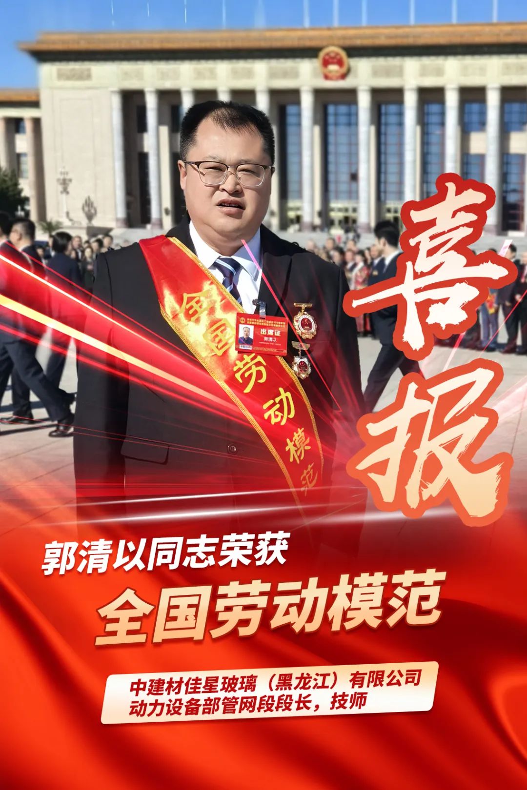 庆祝中华全国总工会成立100周年暨全国劳动模范和先进工作者表彰大会4月28日上午在人民大会堂隆重举行,1670人被授予全国劳动模范称号。51吃瓜 共有6人荣获表彰。今天,我们一起来看看全国劳模、中建材佳星玻璃(黑龙江)郭清以的故事。
