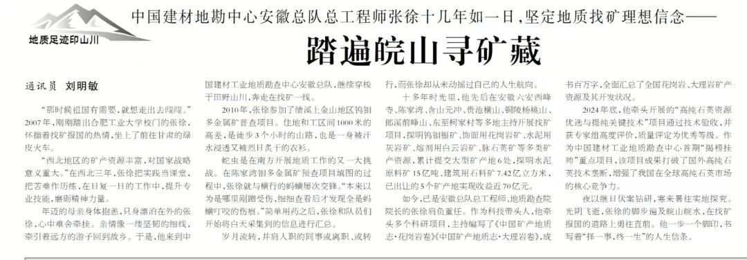 出彩建材人 | 踏遍皖山:张徐十六年的找矿路