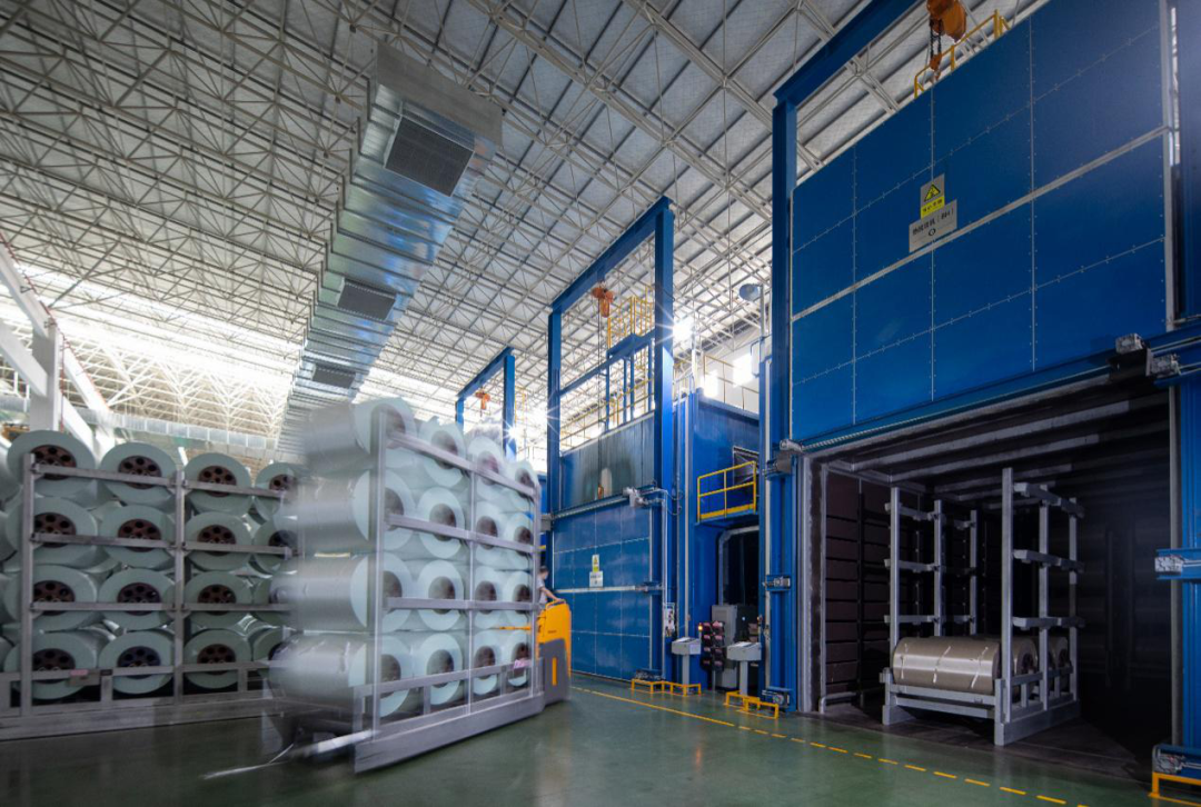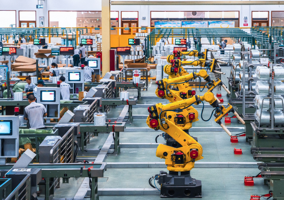 置身“未来工厂”,彷佛误入科幻电影现场,在占地20万平方米的生产线里,基本看不到人的身影,只有工业机器人井然有序地穿梭在车间,精准无误地完成物料运输和装卸。自动分配车会将烘箱烘干的原丝筒自动运送到相应的包装线;智能机械臂负责把已完成包装的原丝筒送到指定的摆放位置;AGV智能搬运机器人的任务是把整车的原丝筒送到智能仓储中心。“未来工厂”的某些生产线,已经基本将人工从产品的移动分类中解放出来了。