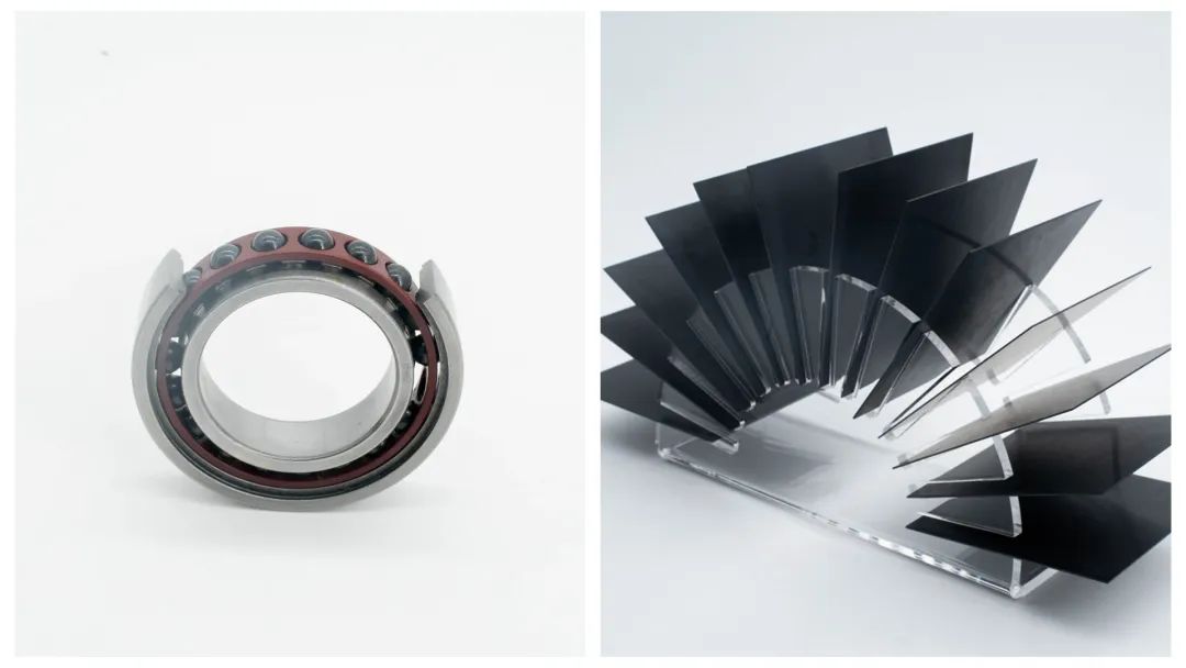 说到这里,很多人就有疑问了:陶瓷这又脆又易碎的东西怎么能用于轴承呢?一般不都是金属钢质的吗?其实,氮化硅陶瓷是一种人工合成的高纯度氮化硅粉体经过高温高压制备的新型先进陶瓷材料,重量为钢的三分之一,硬度仅次于金刚石,与其他材料相比,具有低密度、高强度、耐高温、耐腐蚀、长寿命、自润滑、高硬高韧、无磁绝缘等众多优异性能,是目前综合性能最好的结构陶瓷,被誉为“全能陶瓷”“黑色陶瓷钢”“先进陶瓷材料皇冠上的明珠”。