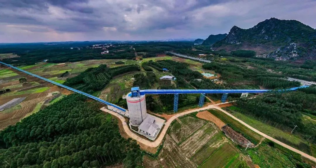 如今当这条“蓝龙”迤逦横卧于旷野之上,成为无人机爱好者于此必拍的靓丽风景线。这正是广西金鲤仅用1年时间建成投运20公里的长距离石灰石输送廊道,每小时运输石灰石达1700吨,相比原定的汽车运输方案,年节约成本7000万元。