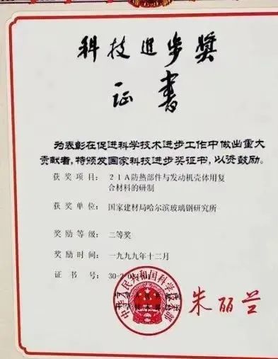 1999年8月,为了实现复合材料构件的轻量化,哈玻院研究开发了网格结构的缠绕成型工艺技术,与此同时,哈玻院研制了碳纤维复合材料精密离心机大臂,经试验该部件满足了轴向强度高、轴向线膨胀系数几乎为零的严苛技术要求,为今后研究开发航天用零膨胀系数的复合材料部件奠定了技术基础。
