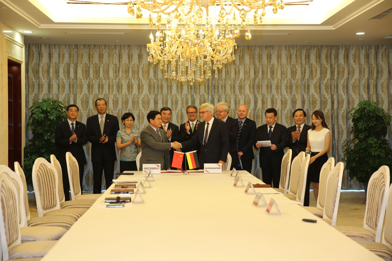 同天下午,在集团总部,宋志平董事长与德国AGN集团总裁LOTHAR一行,就双方新型房屋业务的合作进行深入交流。郝振华与LOTHAR分别代表中国新型房屋集团与德国AGN集团签署了合作协议。国家发改委国际司处长张沁,集团公司董事会秘书光照宇、总经理助理卫锋,中国新型房屋集团总经理张子山,以及德国AGN公司董事总经理MATTHINAS、设计总监STEVEN等人参加了会见和签约仪式。