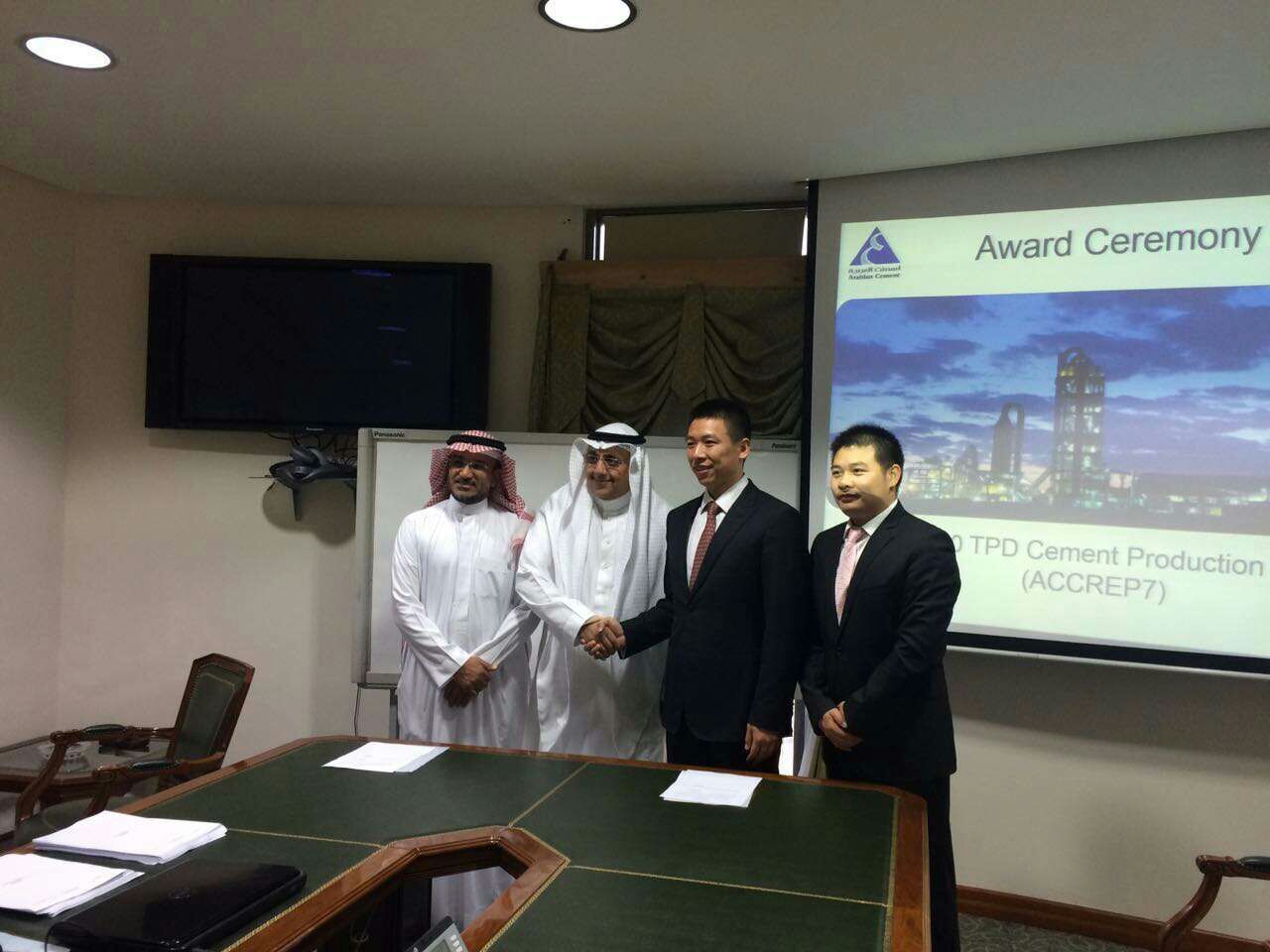 4月1日,中建材进出口所属中建材国际装备有限公司与阿拉伯水泥公司在沙特吉达市签署了日产10000吨熟料水泥厂总承包合同。这是中建材国际装备在国际水泥工程市场上签订的***订单,也是公司积极实践国家“一带一路”战略的重大成果。中建材国际装备总经理张燎、阿拉伯水泥公司CEO Gasem代表双方签署合同。