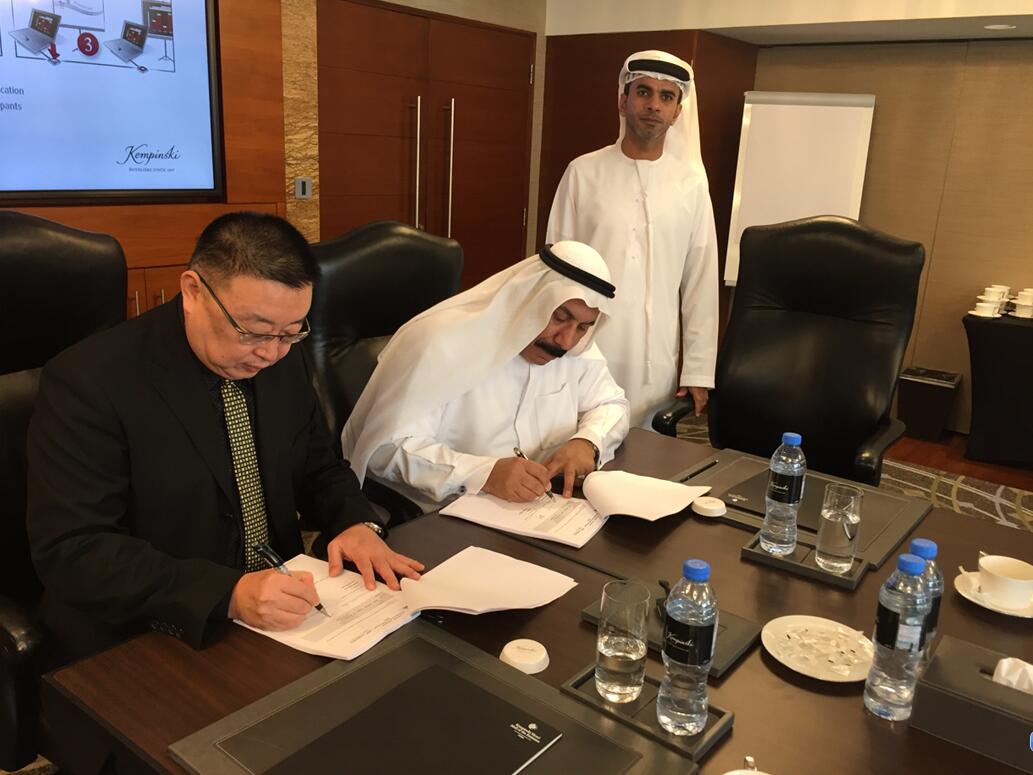 11月20日,中材节能股份有限公司在阿联酋迪拜成功签署Ras Al Khaimah水泥公司余热发电总承包项目合同。中材节能副总裁魏文华、Ras Al Khaimah水泥公司董事长Mr. Abdul Rahman Sultan Al Sharhan分别代表双方签字。这是中材节能继阿联酋UCC、FCI、NCC水泥公司余热发电项目成功投入运行之后,在阿联酋市场上获得的又一重要订单。