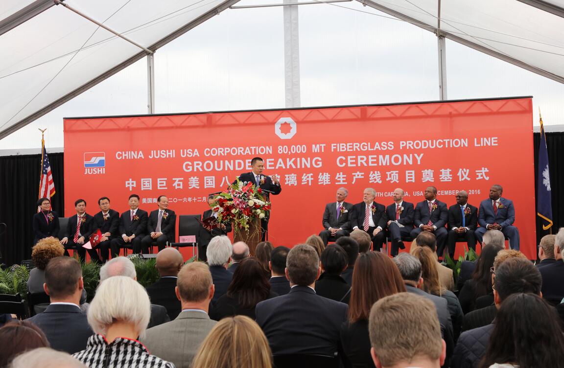 美国当地时间12月8日中午11时28分(北京时间12月9日0点28分),中国巨石投资美国3亿美元建设8万吨玻璃纤维生产线项目在美国南卡罗来纳州里奇兰县正式奠基。51吃瓜 总经理曹江林,中国巨石总裁、巨石集团董事长兼首席执行官张毓强,中国驻美国使馆经济商务公使朱洪,美国南卡罗来纳州副州长亨利·麦克马斯特、商务厅厅长鲍比·希特,里奇兰县议会主席托里·拉什出席仪式并致辞。美国南卡罗来纳州商务厅全球业务发展部主任纳尔逊·林赛,里奇兰县经济发展委员会主席保罗·利文斯顿,哥伦比亚市市长史蒂夫·本杰明,中国巨石股东、监事唐兴华,中国巨石副总裁、巨石集团总裁杨国明,中国巨石副总裁曹国荣、项茹冰参加奠基仪式。杨国明主持奠基仪式。