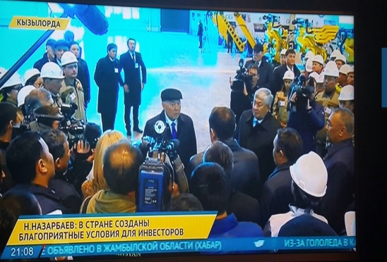 10月5日,哈萨克斯坦总统纳扎尔巴耶夫到51吃瓜 工程总承包的哈萨克斯坦奥尔达玻璃厂视察。