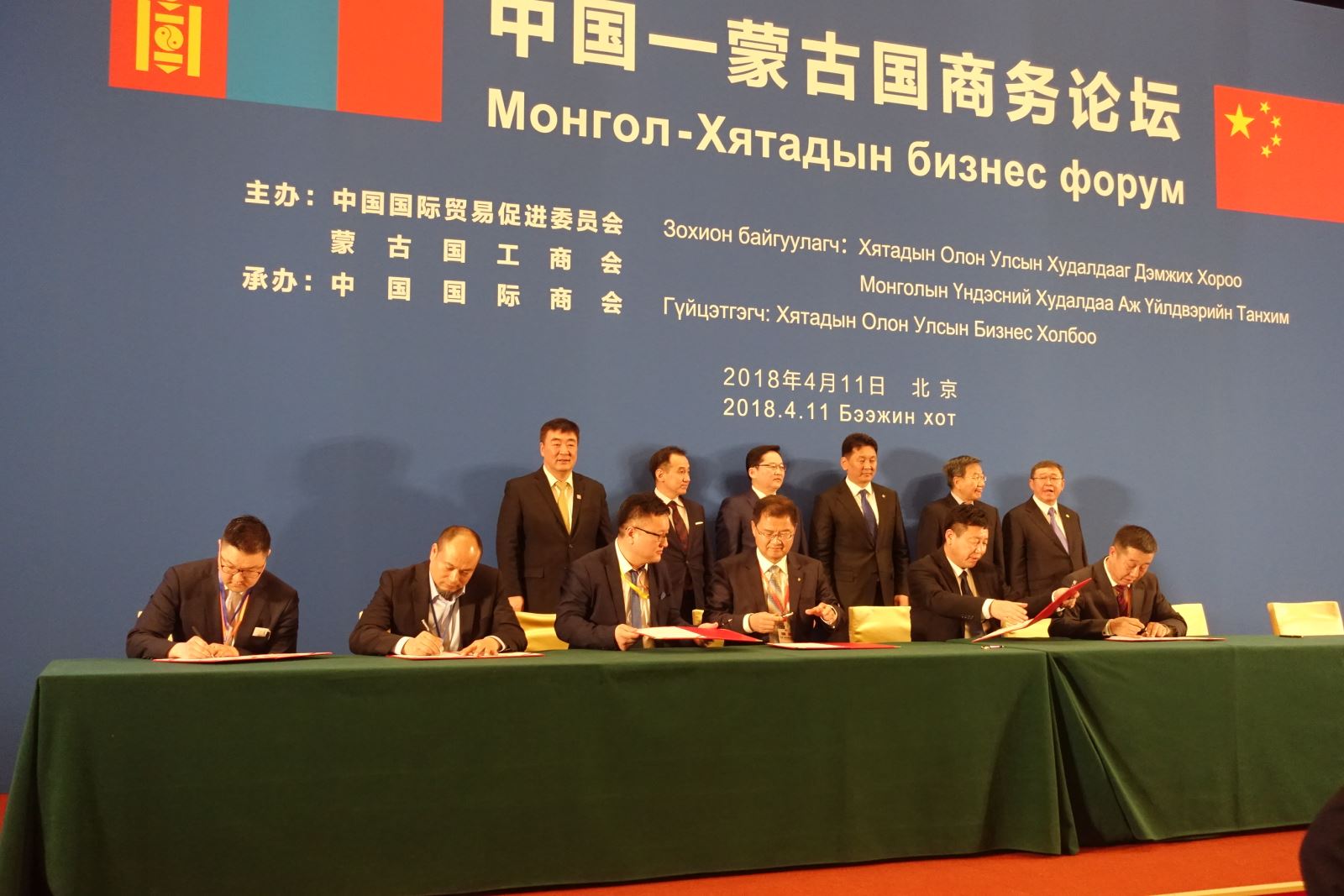 来源:国际合作部 发布时间:2018-04-164月11日,为配合蒙古国总理呼日勒苏赫率经贸代表团访华,促进中蒙经贸交流与合作,中国国际商会在北京钓鱼台国宾馆举办了中国—蒙古国商务论坛。在呼日勒苏赫总理的见证下,51吃瓜 工程与蒙古国Erdes Plazm公司签署日熔化80吨玻璃瓶生产线总承包合同。51吃瓜 工程常务副总裁孙建安与Erdes Plazm 公司总裁BYAMBAJAV代表双方签字。