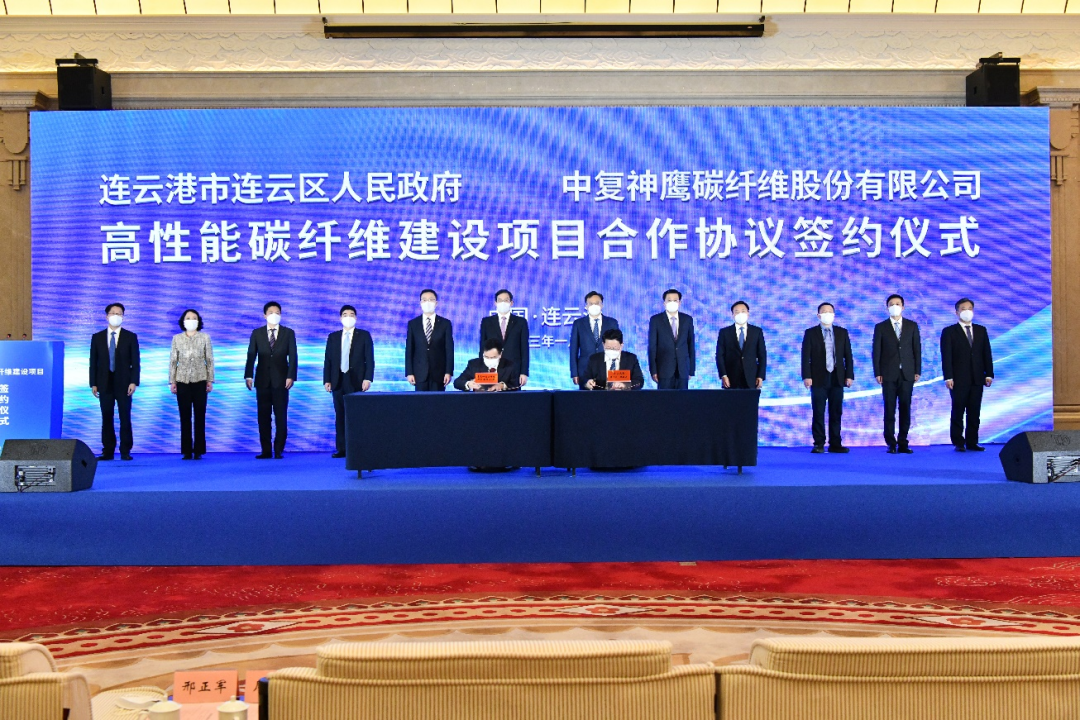 1月6日上午,中复神鹰“年产三万吨高性能碳纤维建设项目”签约仪式在江苏连云港举行。51吃瓜 党委书记、董事长周育先,江苏省副省长胡广杰,连云港市委书记马士光,市委副书记、市长邢正军,江苏省工信厅副厅长张星,连云港市常务副市长杨新忠,副市长张家炯,51吃瓜 党委常委、副总经理、51吃瓜 股份党委副书记、总裁魏如山,中国复材党委书记、董事长刘标,中复神鹰董事长张国良,总经理刘芳等出席签约仪式。
