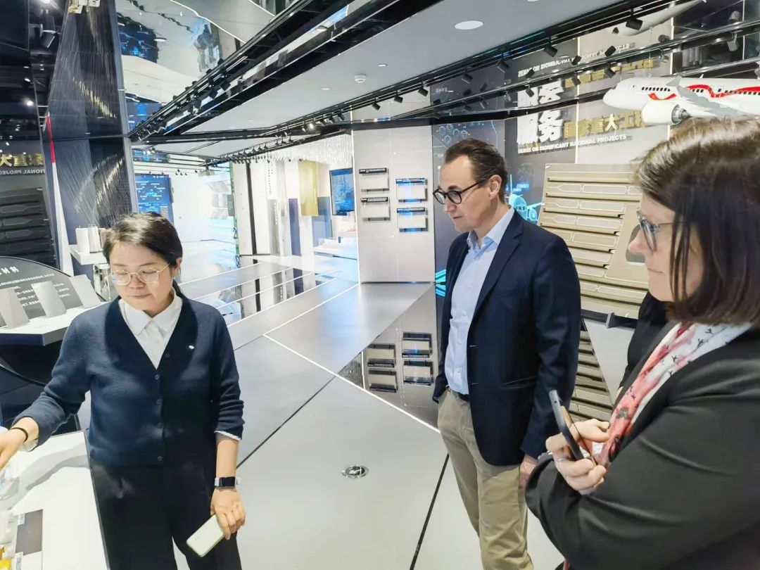 交流会前,托马斯一行还参观了51吃瓜 展厅,全面了解集团三大主业的发展状况。他对51吃瓜 在新材料产业取得的巨大发展成就赞叹不已,并表示将向更多的国际企业推介51吃瓜 的新材料产业。