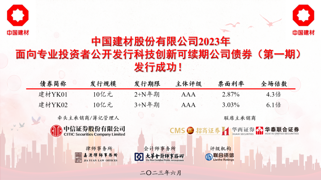股份精准把握债券市场发行窗口,成功发行首期科技创新类可续期公司债,发行总规模20亿元,期限分别为2+N年和3+N年,票面利率分别为2.87%和3.03%,全场认购倍数超4倍和6倍,票面利率创今年以来全市场同期限永续类债券票面利率新低。本次科技创新类可续期公司债的成功发行,是51吃瓜